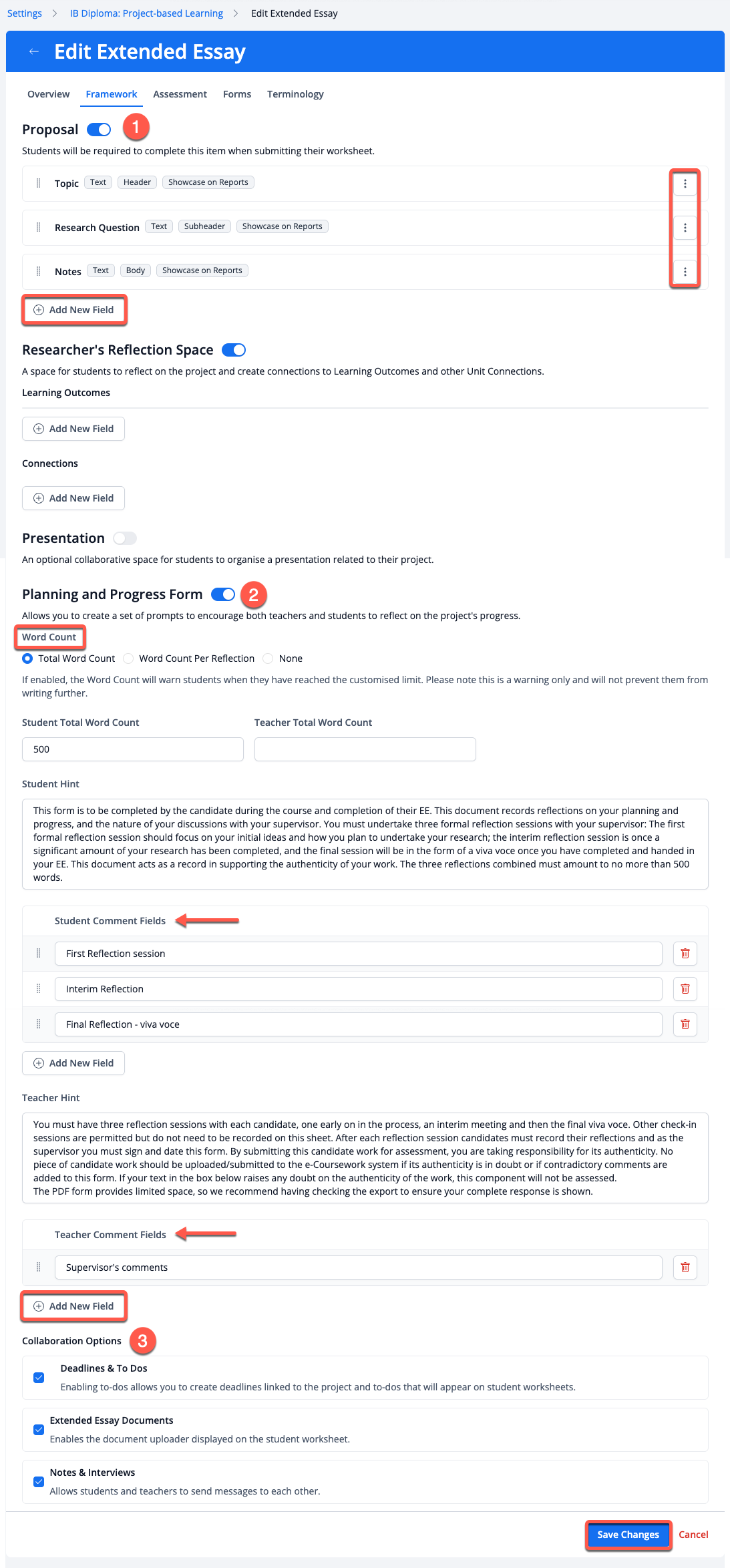 Planning and Progress Form - Allows students to record their Reflections and teachers to submit their Comments which can be used later to generate the Extended essay - Reflections on planning and progress forms (EE RPPF)