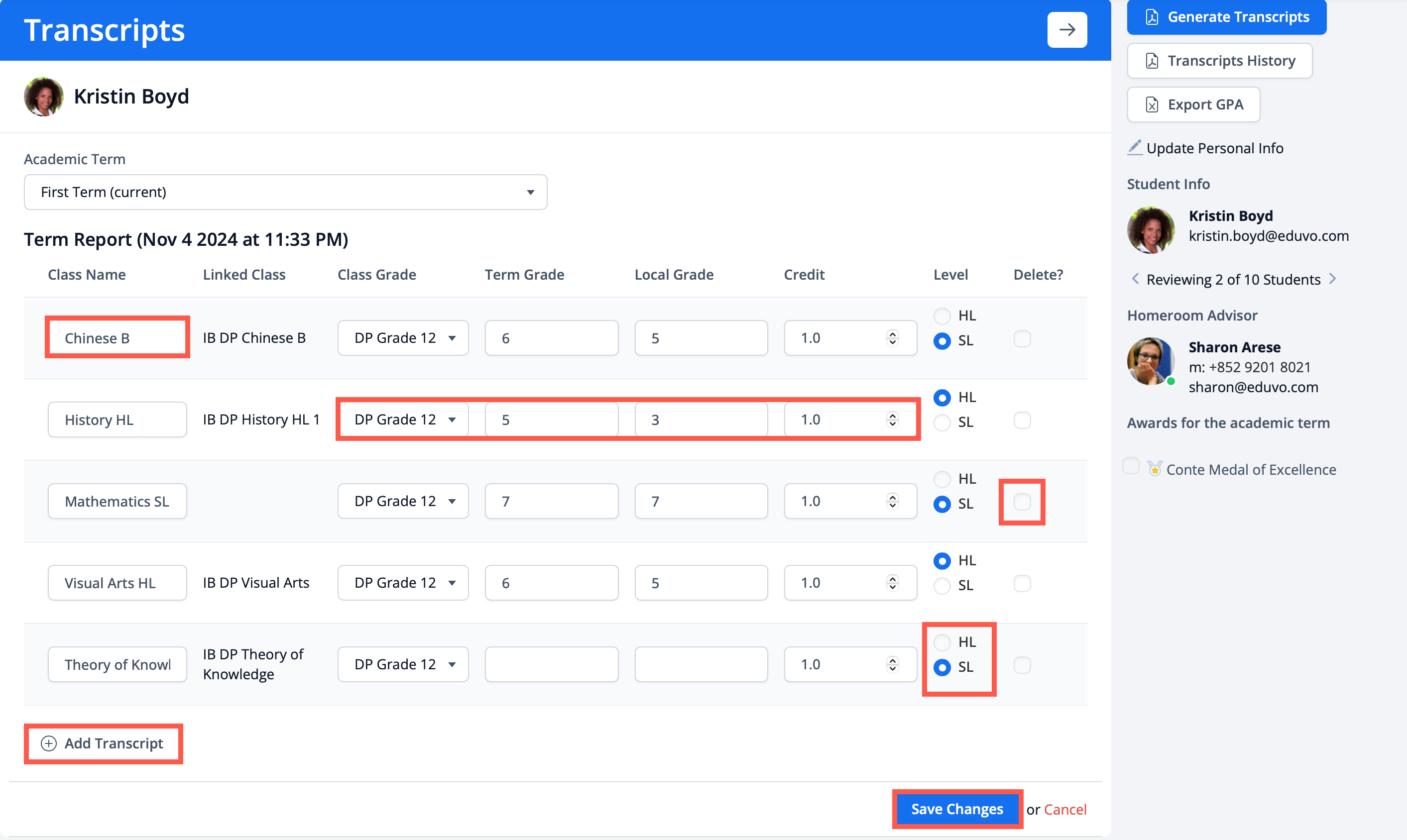 Note: Please note that you need to generate report cards for the academic term in order for it to appear as a transcript record.