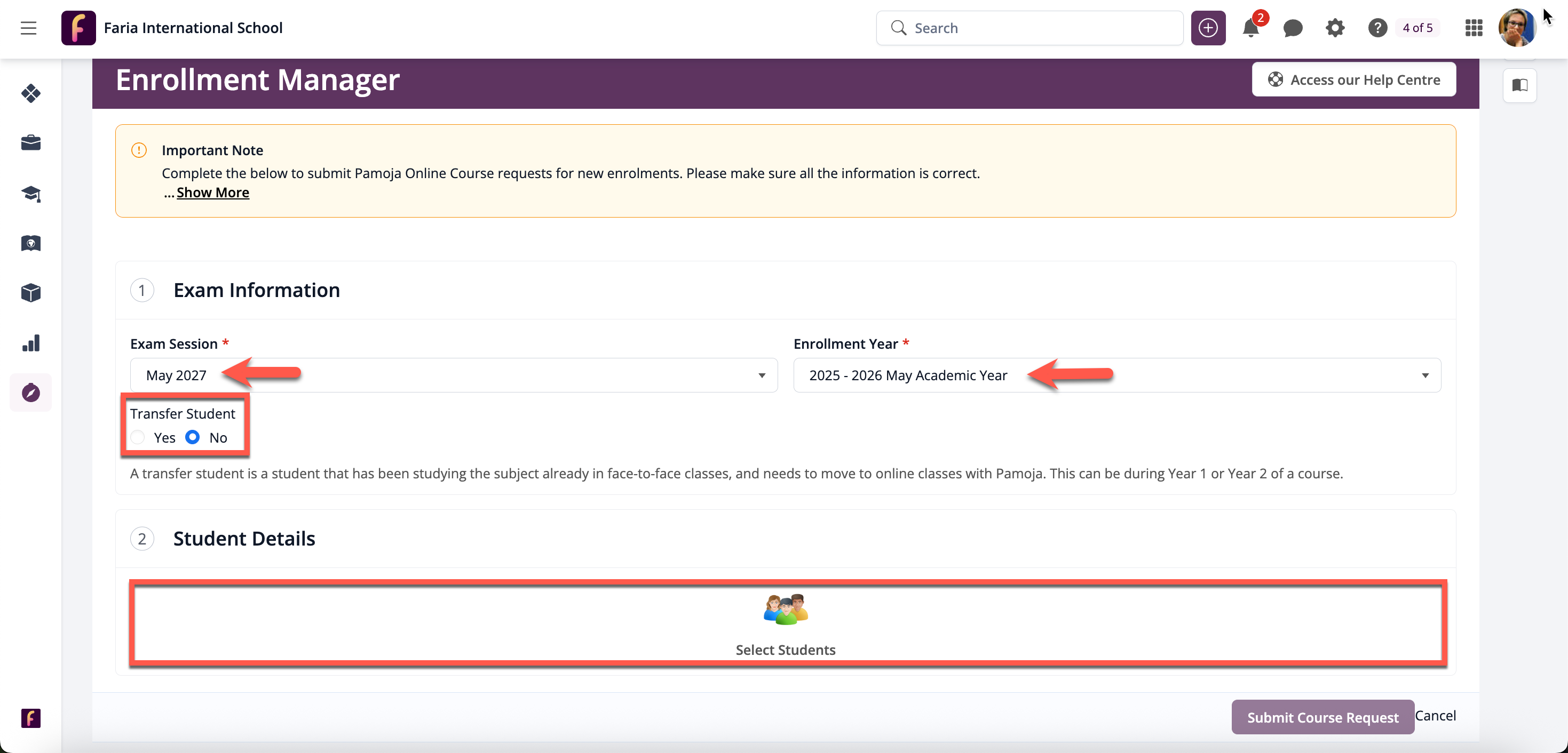 You can register students by following the steps below:
