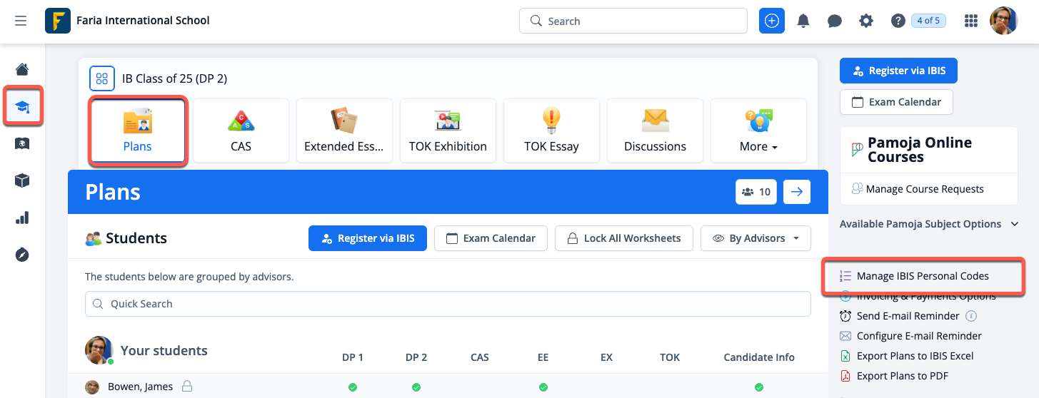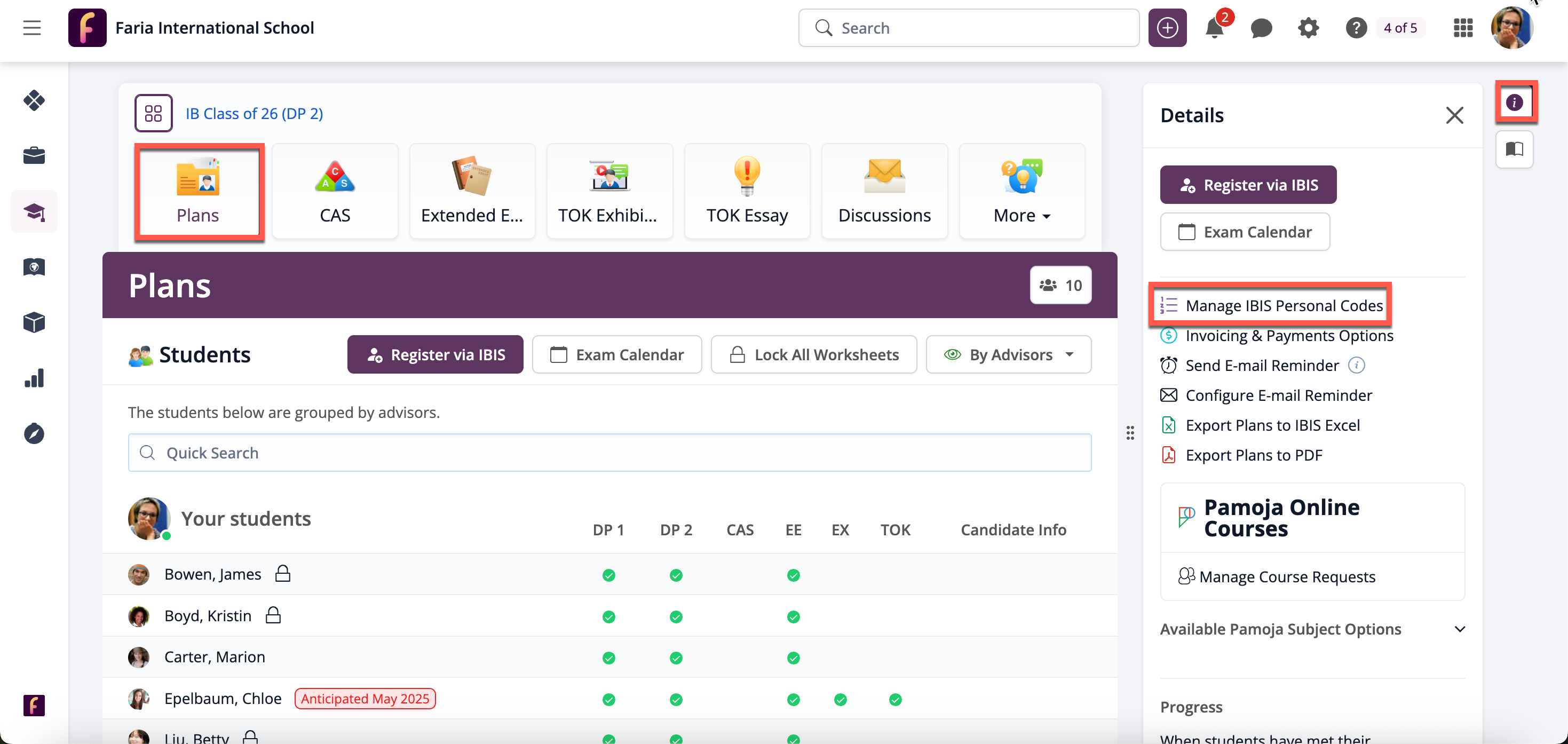 You will want to check on IBIS and ensure that the student’s IBIS personal code is updated on the Plans roster by navigating to your IBDP Year Group > Plans > Manage IBIS Personal Codes.