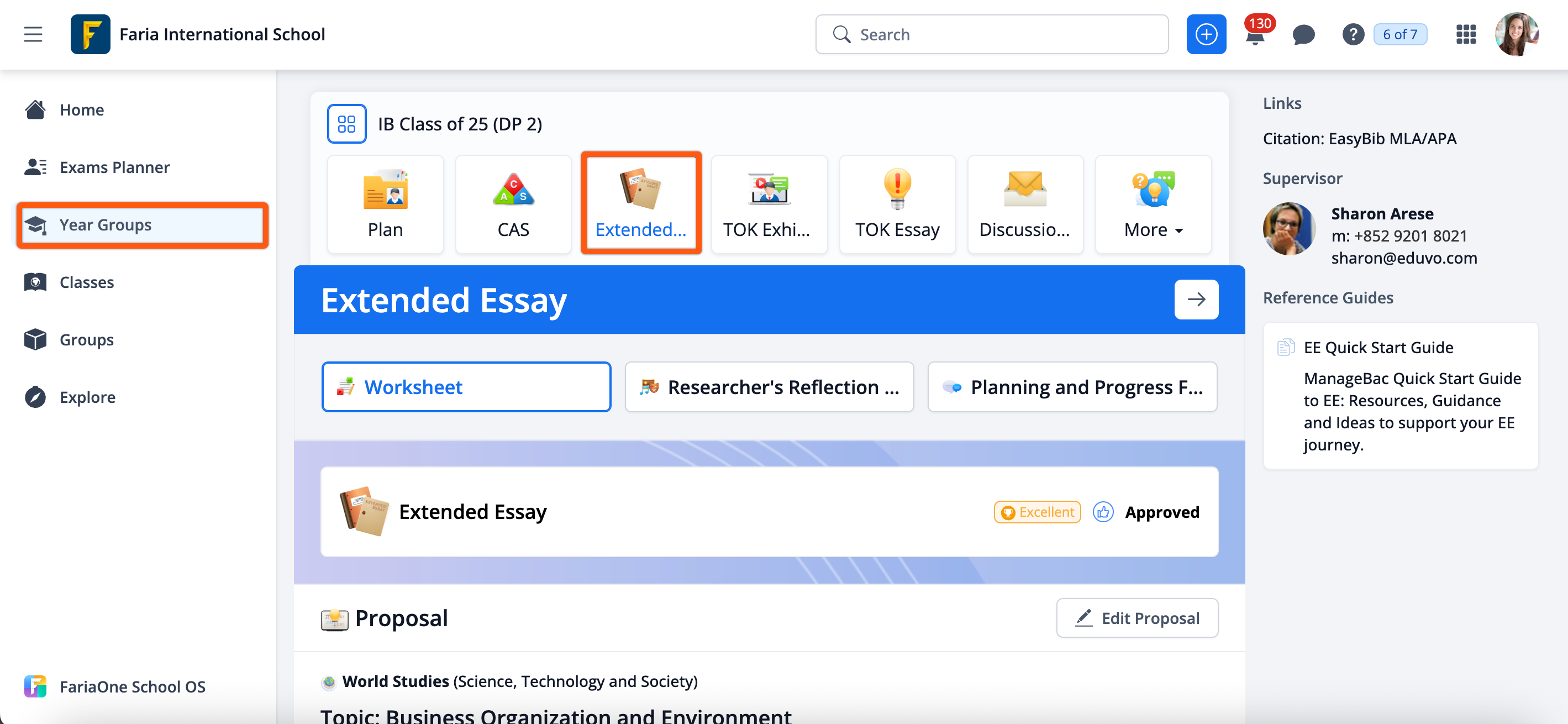 Navigate to the Year Groups in your left-hand side menu and click Extended Essay.
