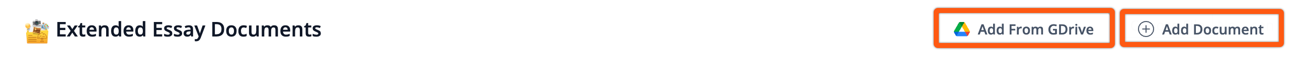 You or your Supervisor can also submit your outlines, drafts, or reference documents under the Extended Essay Documents section. Add to your worksheet via Upload from G-drive or Add Document.