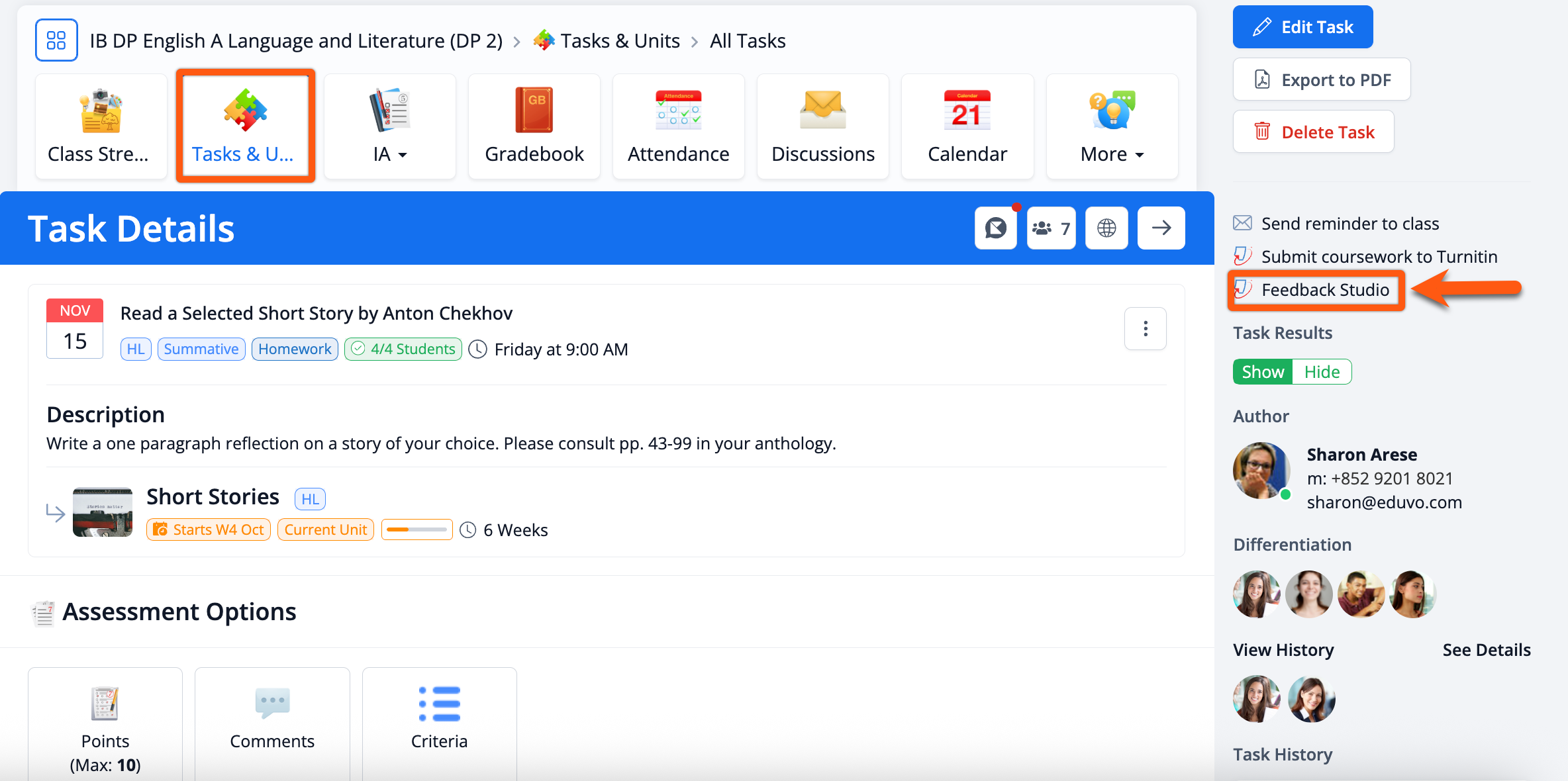 Next, click Feedback Studio to view the Assignment Inbox and TurnItIn settings for this assignment.