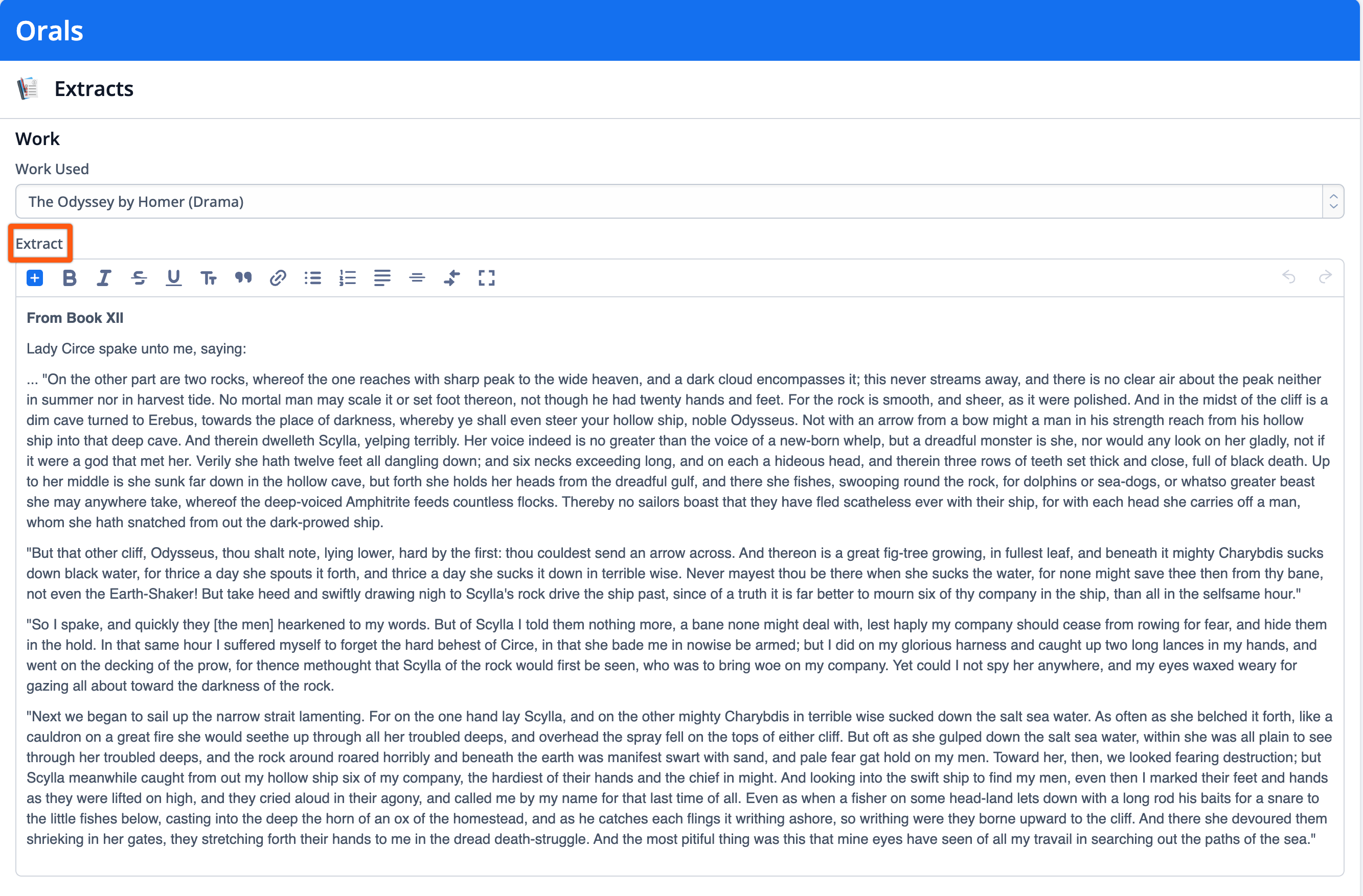 Students can enter Extracts into the Extract text box in their Oral worksheet to record the documents or images they used for the Oral.