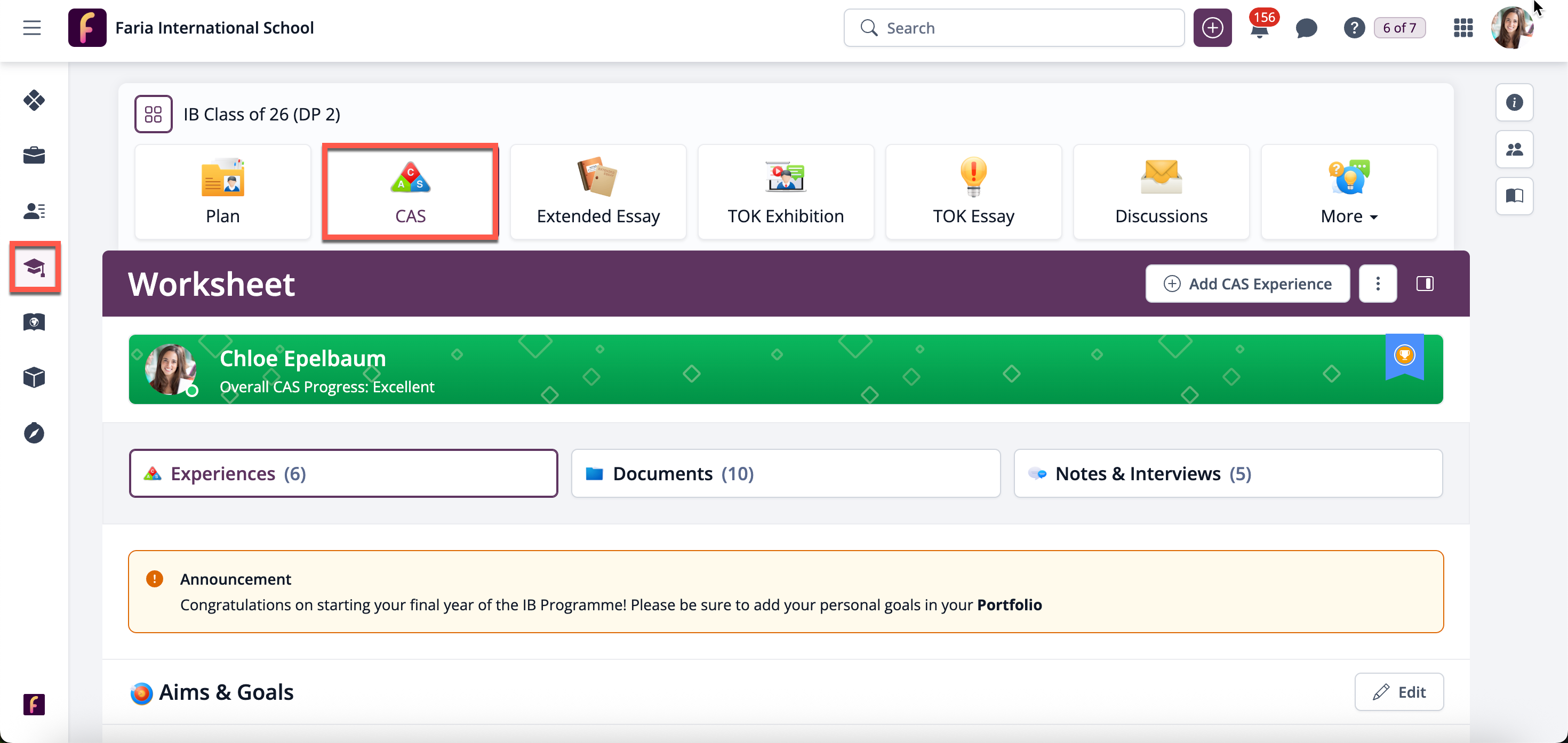 Your CAS worksheet has different analytics tools designed to help you keep track of your added CAS experiences. Depending on what options are enabled by your school, you may have access to browse experiences and reflections by