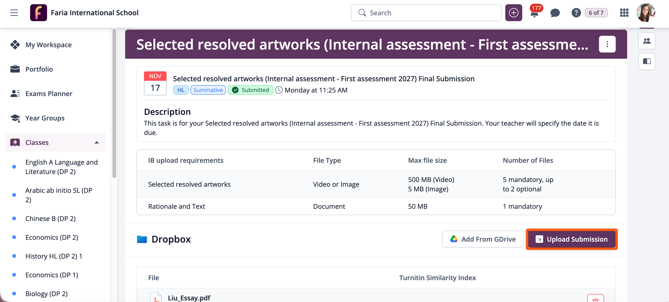 Students can submit to the configured First Assessment IA task from the IA page in the Class or by selecting the Task from their Calendar or Tasks & Deadlines pages.