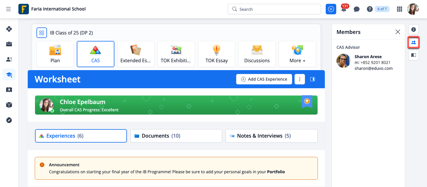 Students can find messages written for them by their advisor via the Notes & Interviews section of their Project Worksheets. This will include any Worksheet under a student's Year Group Manager.