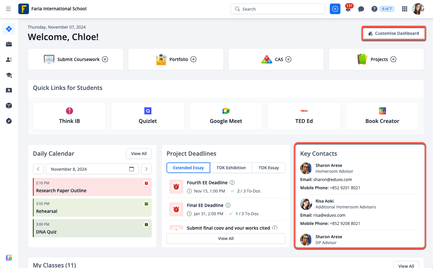 If an advisor is not assigned to a student, the student can find the email address to any of their Key Contacts located in the custom widgets of their screen via their My Workspace. You may have to customise the Dashboard to include the Key Contacts widget.