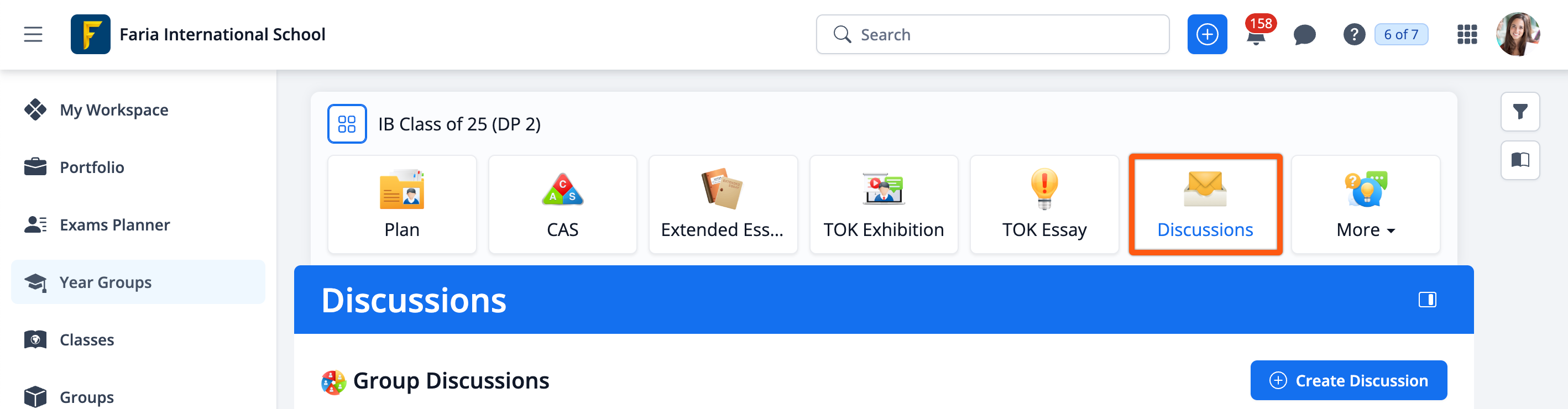 You can view, create & respond to discussions for your Year Group via Discussions in your Year Group menu. Discussions posted here as public discussions are visible to all members of the year group. You can filter on the right for Public or Private Discussions, any by Discussion type (Deadline, Announcement, Homework).