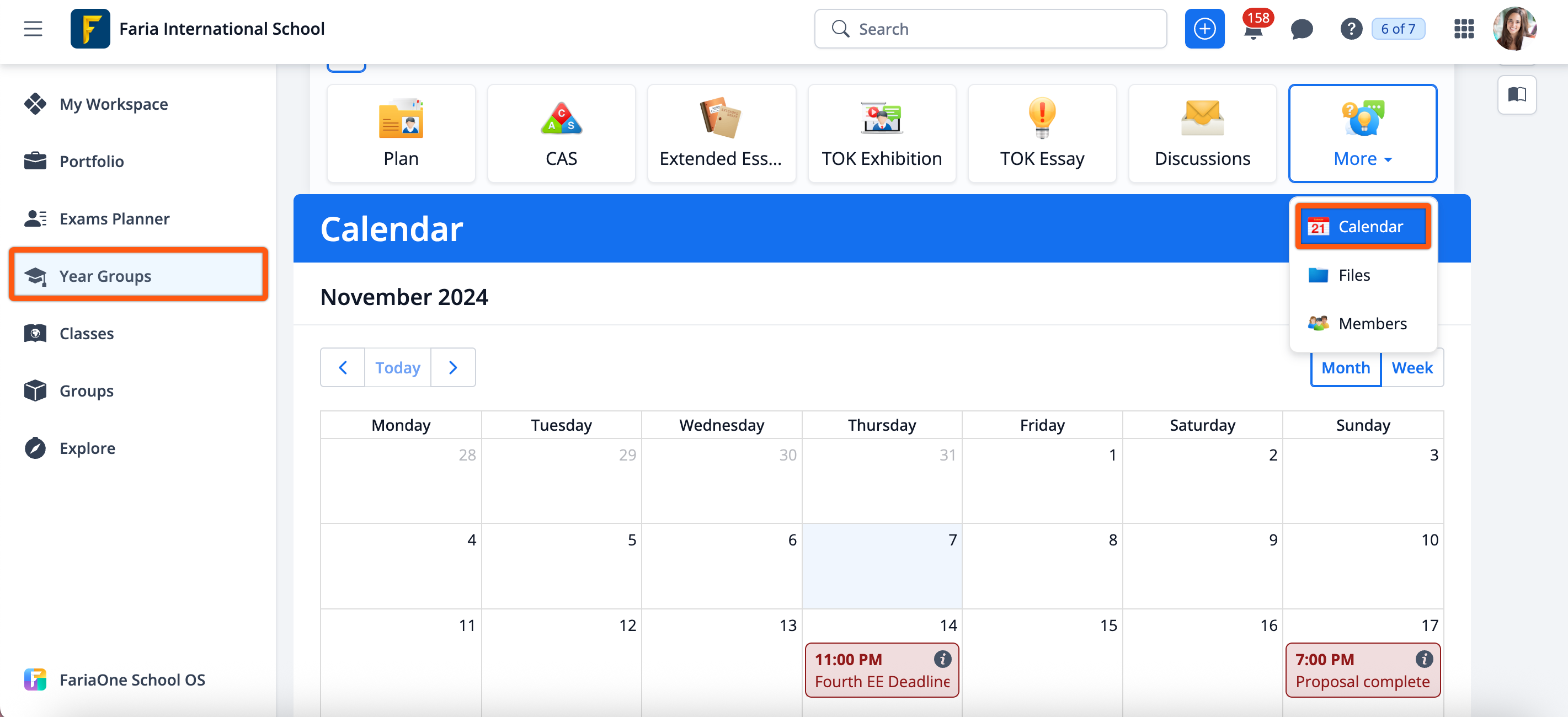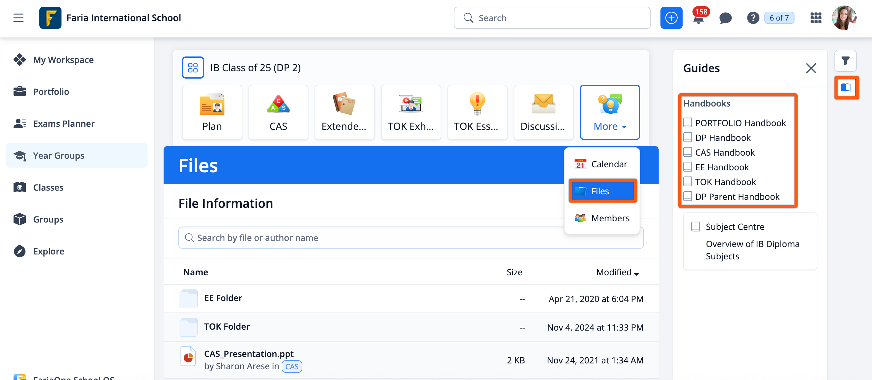 You can access and download files uploaded to the Year Groups > Files in separate folders. Links to student handbooks for different components of your Year Group can be found on the right navigation panel.
