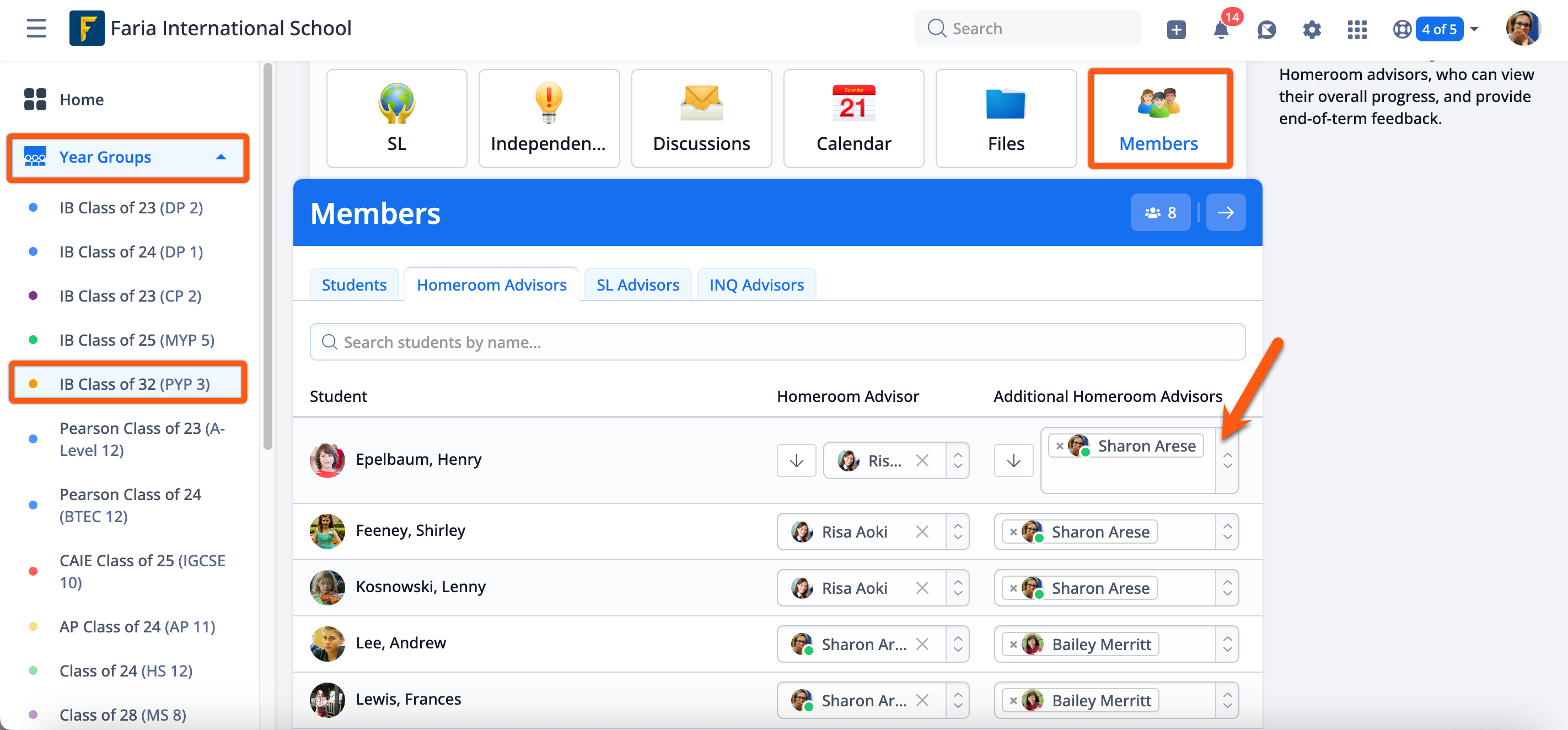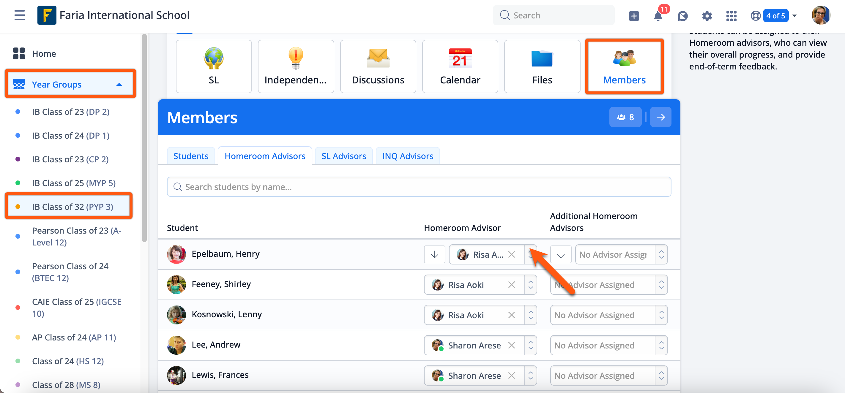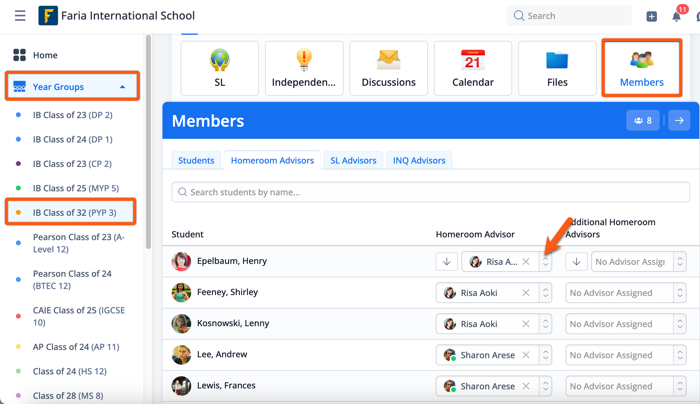 Navigate to the Year Groups > select a year group > Members > Homeroom Advisors.