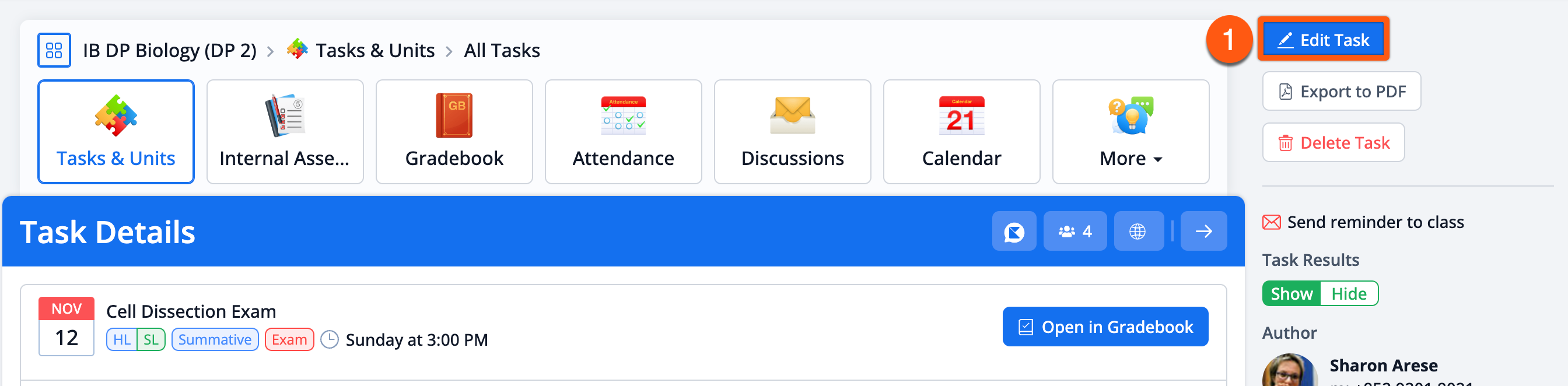 Creating a ManageBac+ Task in a Class