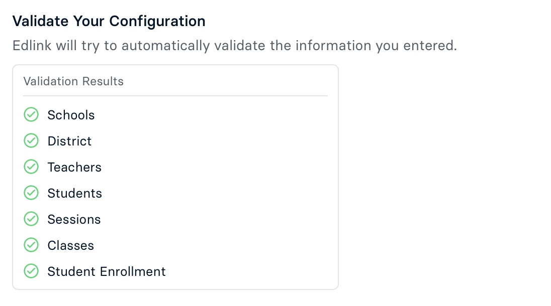 After validating, a successful configuration is indicated: