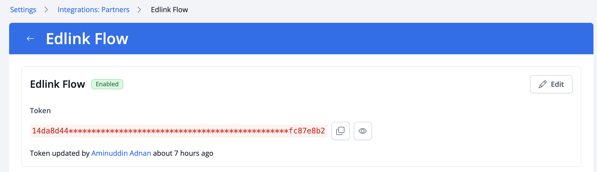 - Navigate to Settings -> Partners -> Edlink Flow