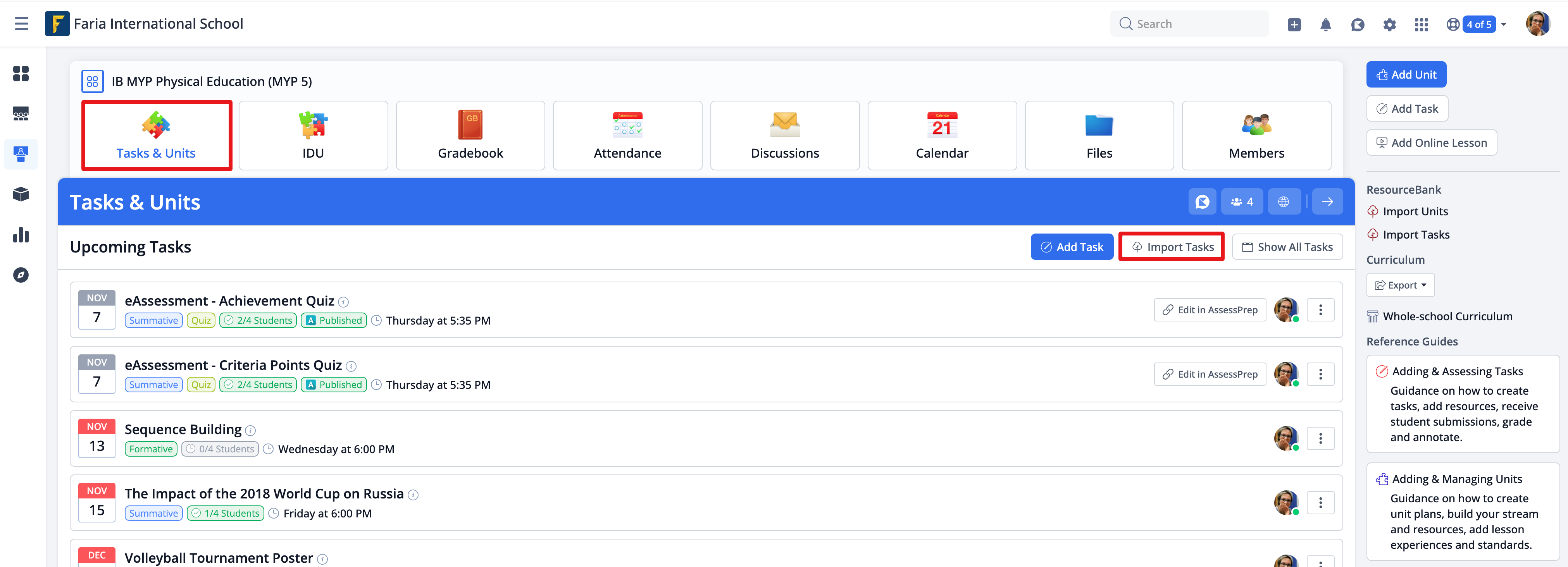 Via Classes > Tasks & Units