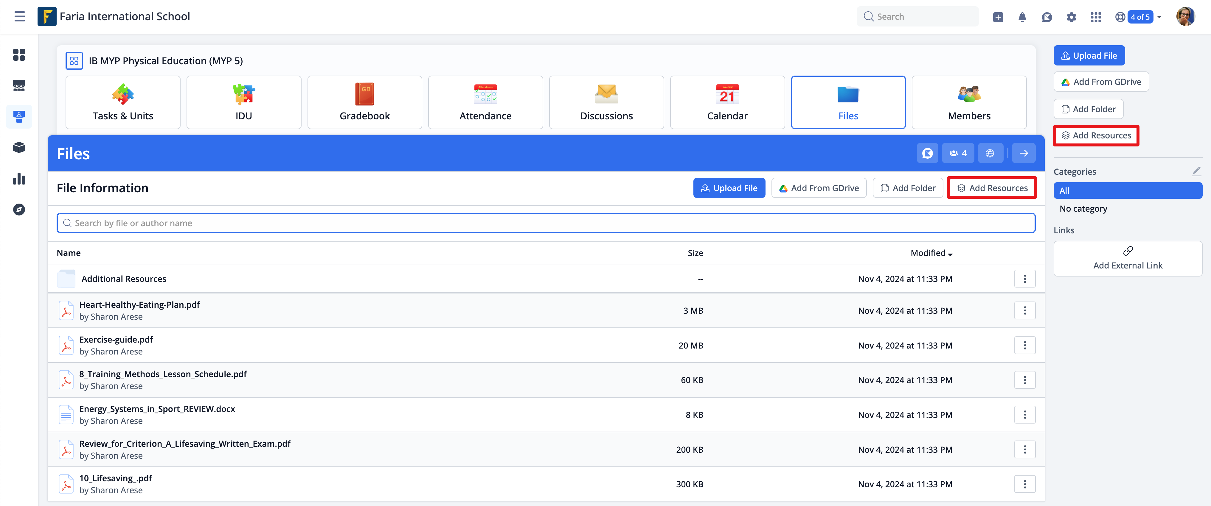 The files will be added to your class after you click Add Resources at the bottom of the page.
