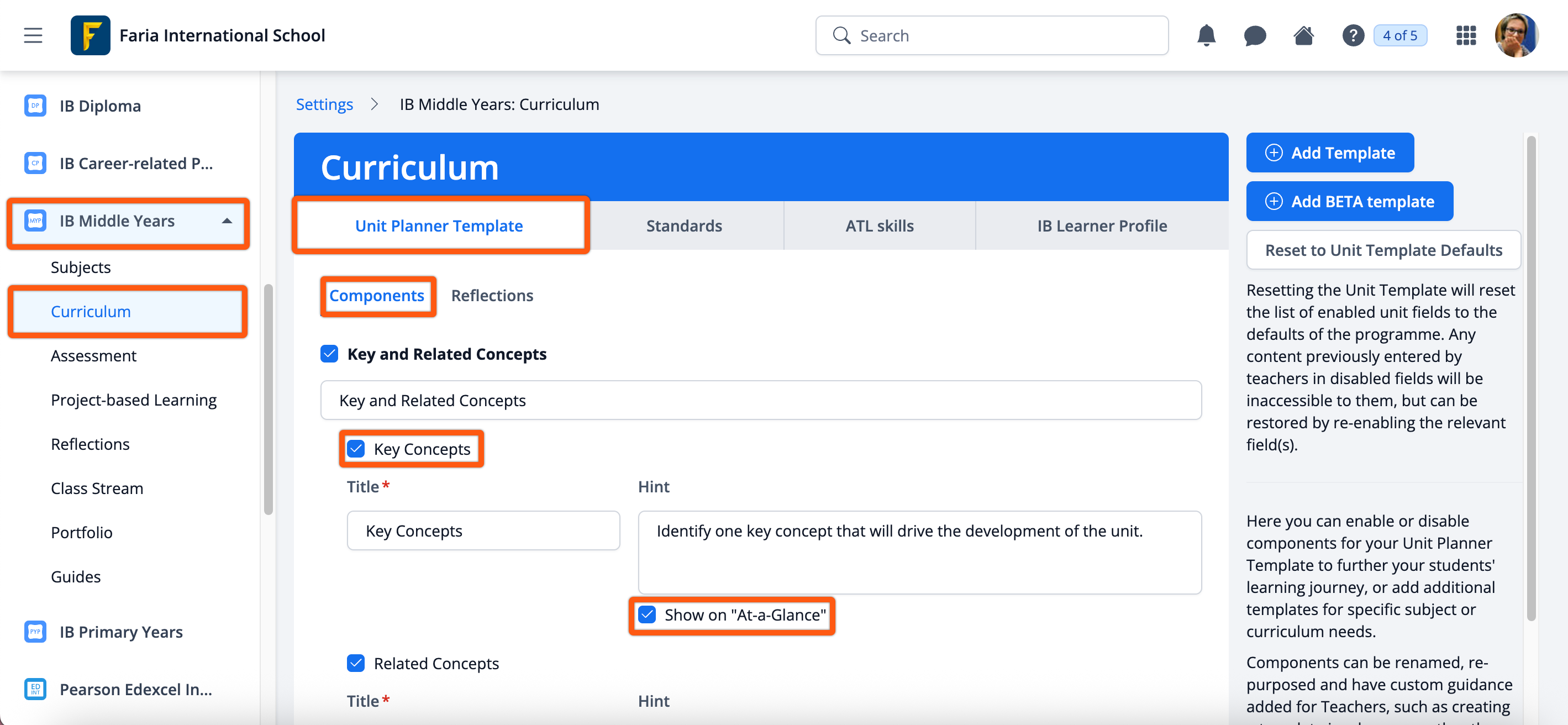 - Adjust what can be seen At-a-Glance, which changes what can be made visible to parents and students on ManageBac+