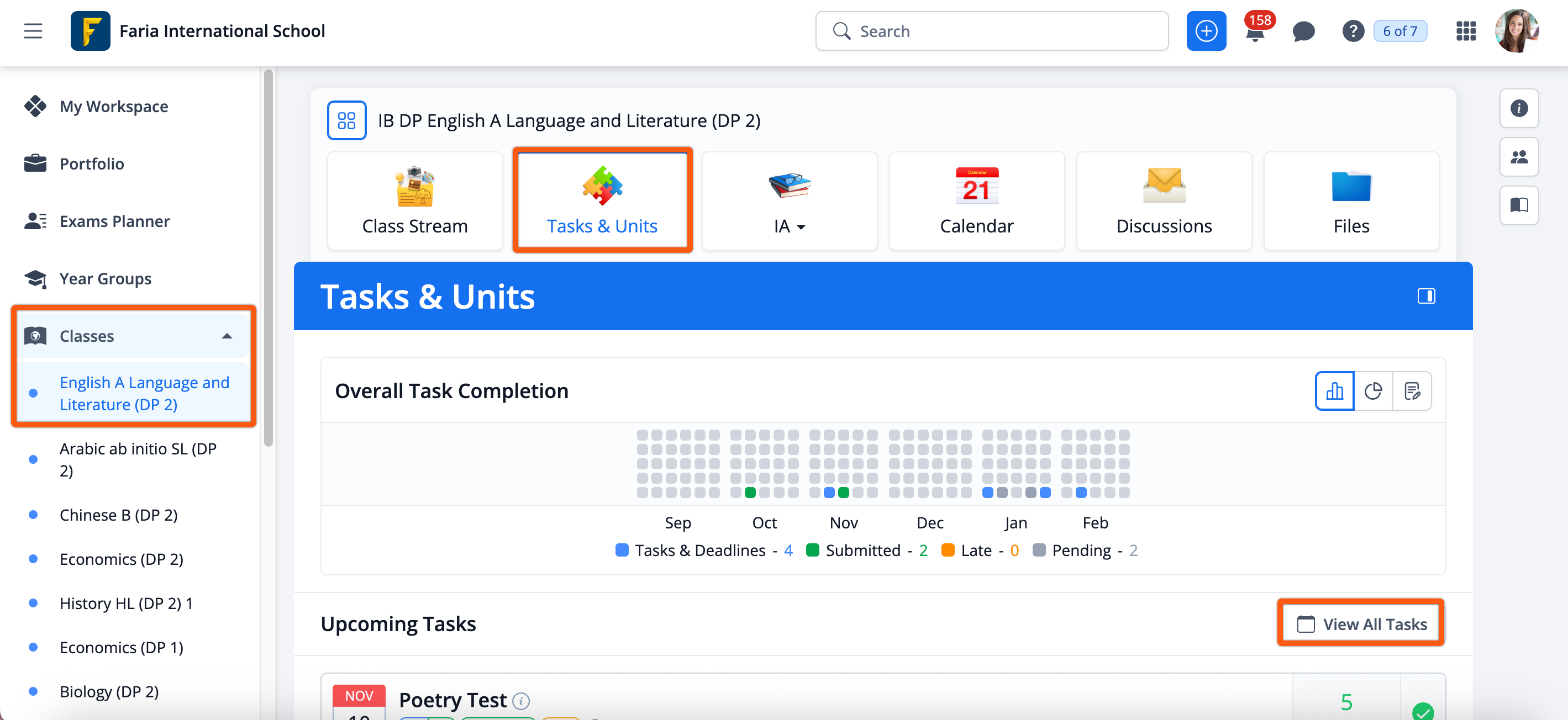 Navigate to Classes > Select your class > Tasks & Units > View All Tasks. Here you can see the upcoming tasks as well as the completed tasks.