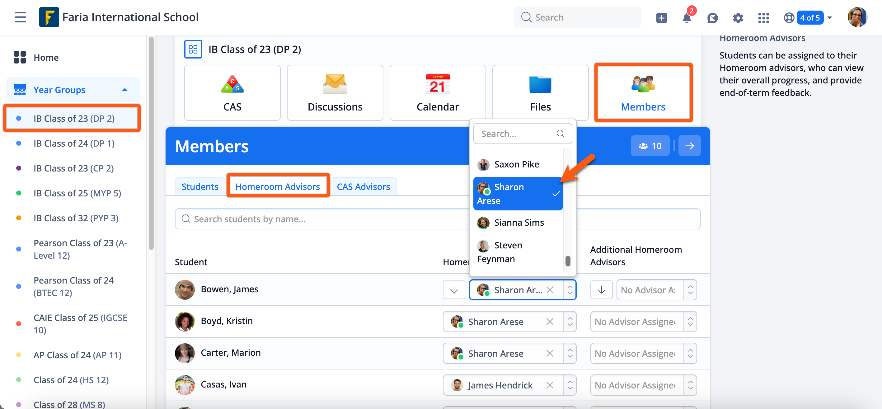 For larger schools, advisors can also be assigned via the Year Group > Members > Bulk Assign Students.