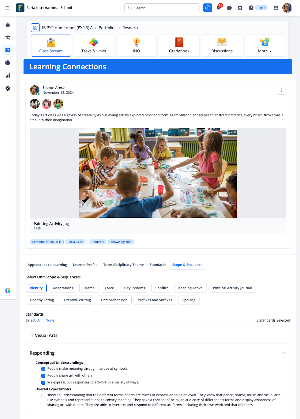 Teachers can tag from any standards available on ManageBac, including IB DP Syllabus, Pearson, Cambridge, PYP Scope & Sequences, and all Standards available in the Standards Repository or added as Custom Standards sets, providing broad coverage across all classes.