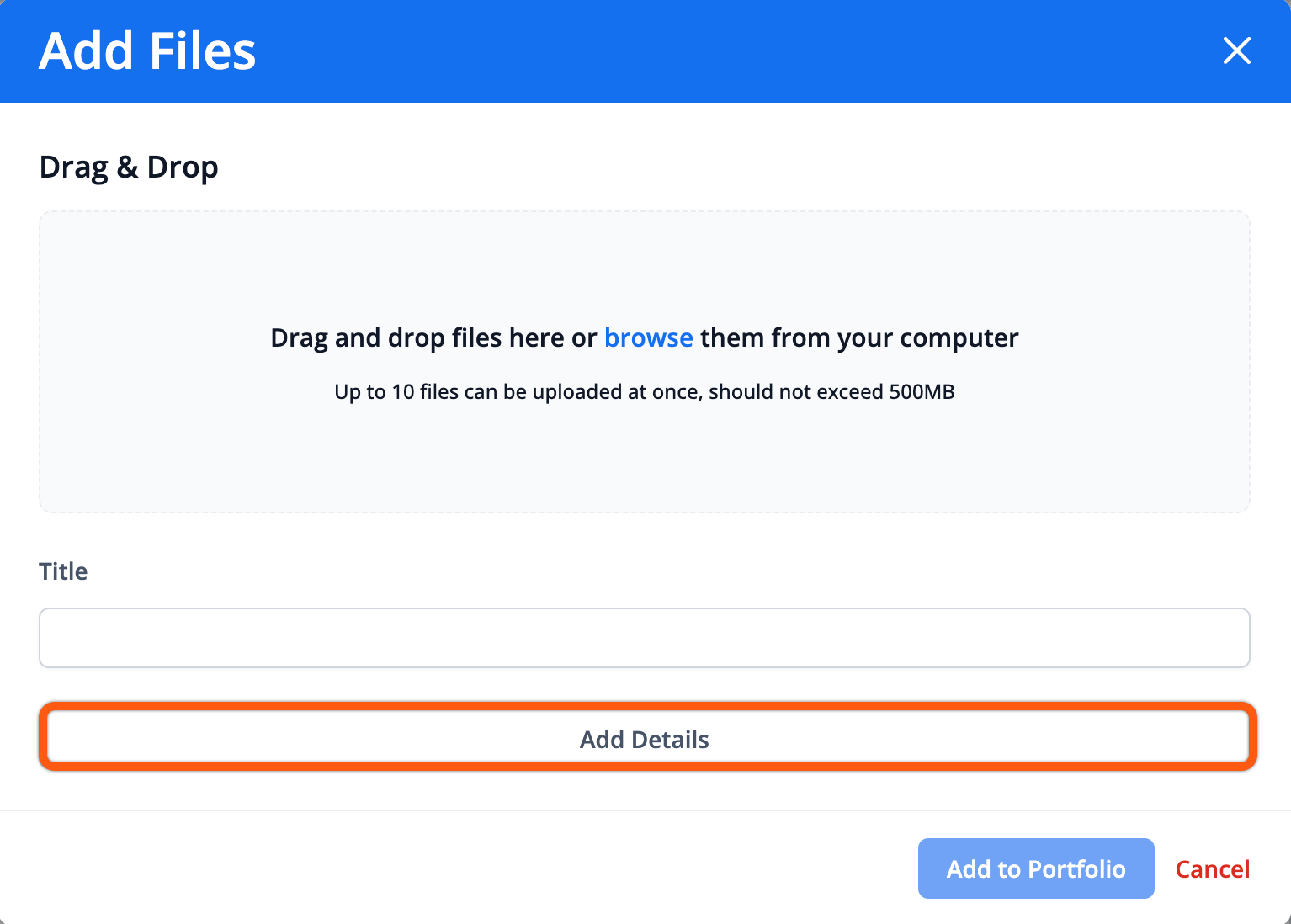 After selecting a resource type, you are only required to enter a title and upload the file. Additional details such as descriptions, dates, privacy, or notifications can be optionally added by expanding the Add Details section.