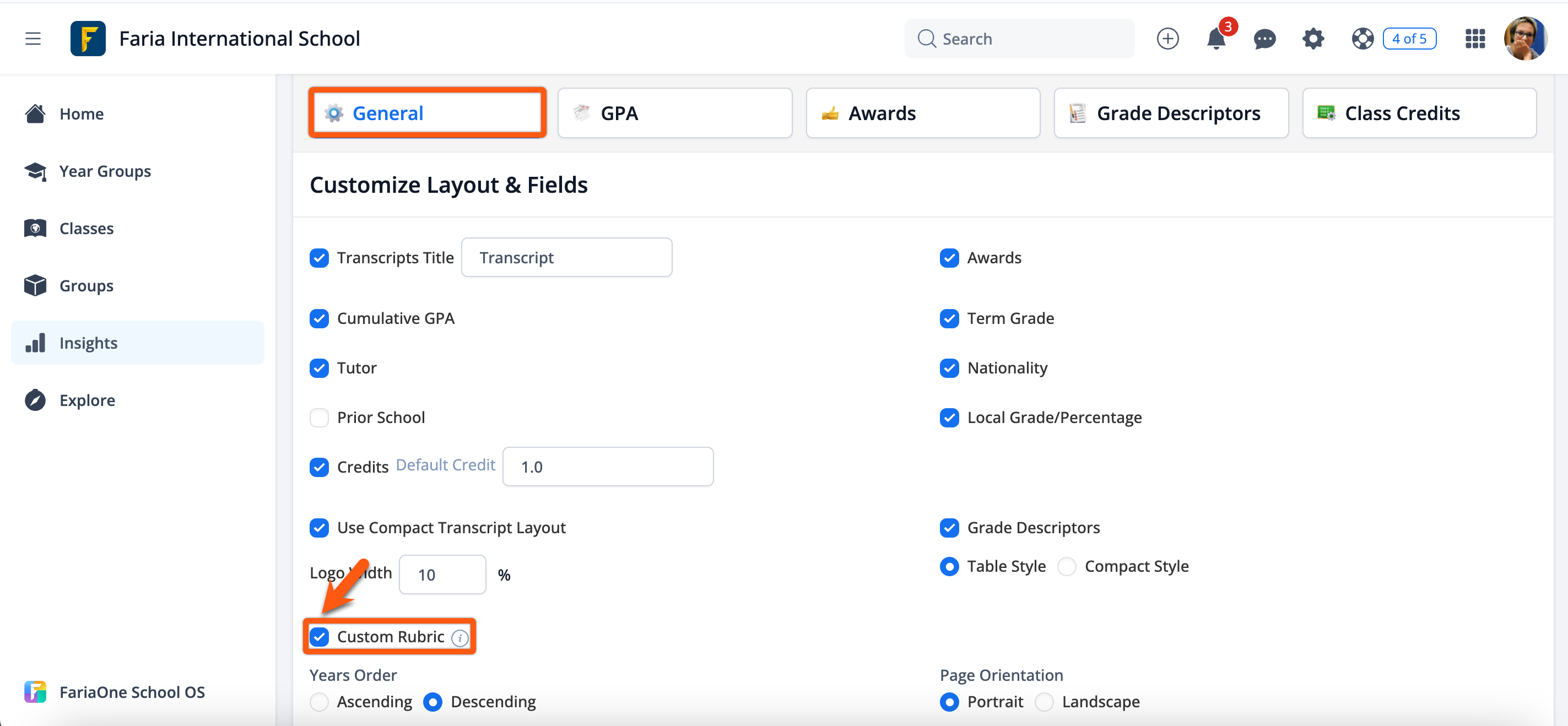 We have added the ability to include Custom Rubrics on the transcript by enabling Custom Rubric in Transcript settings. This option is only available for report cards that were generated using the MCR templates. Please see our article Generating Academic Transcripts QuickStart Guide for more information.