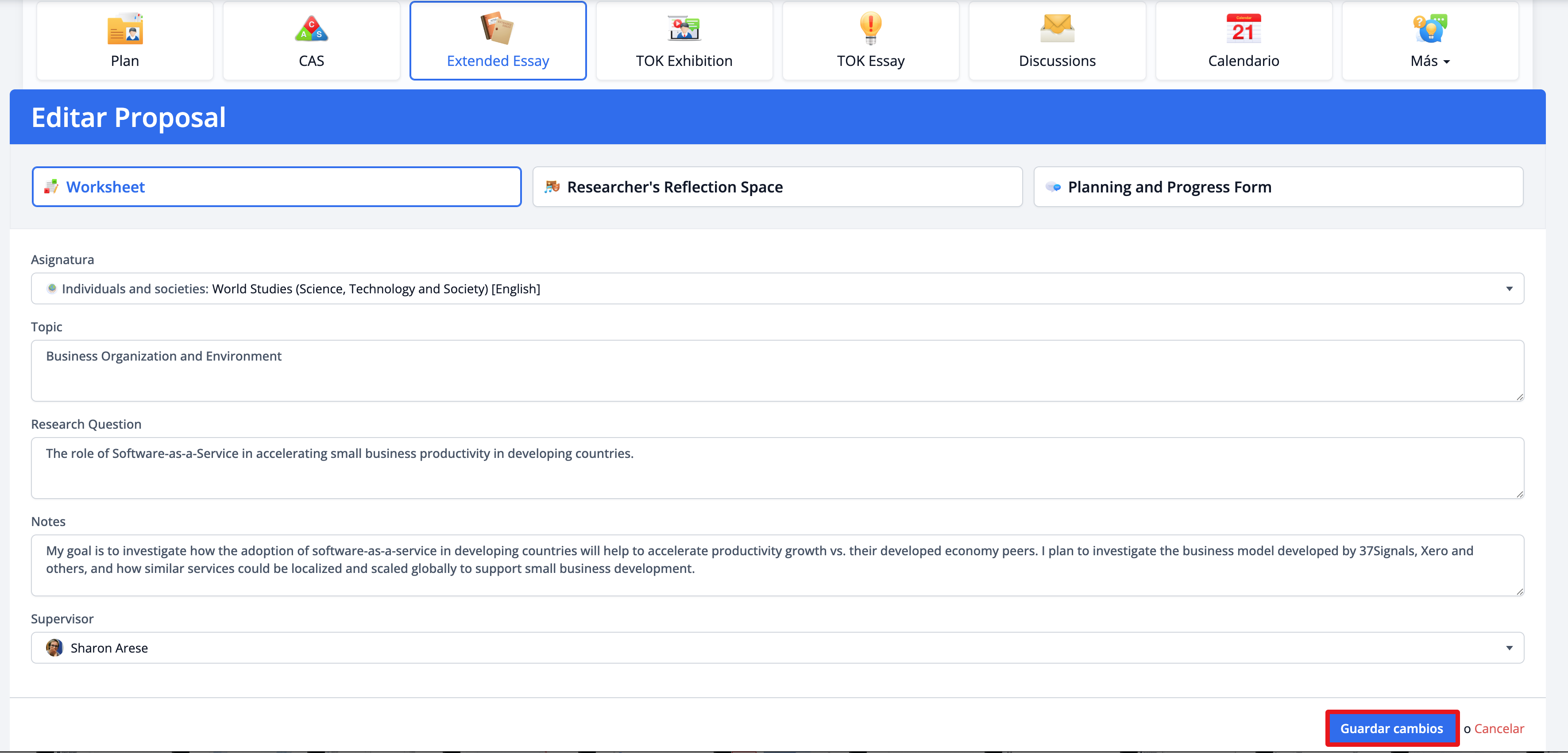 Agregar tu propuesta de Extended Essay
