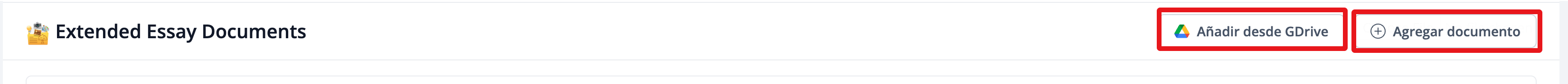 Tanto tú como tu supervisor pueden subir esquemas, borradores o documentos de referencia en la sección Documentos del Extended Essay.