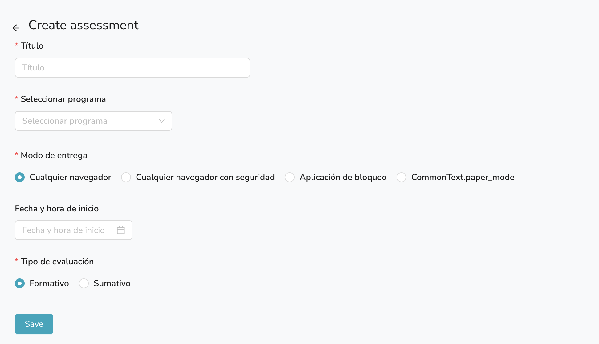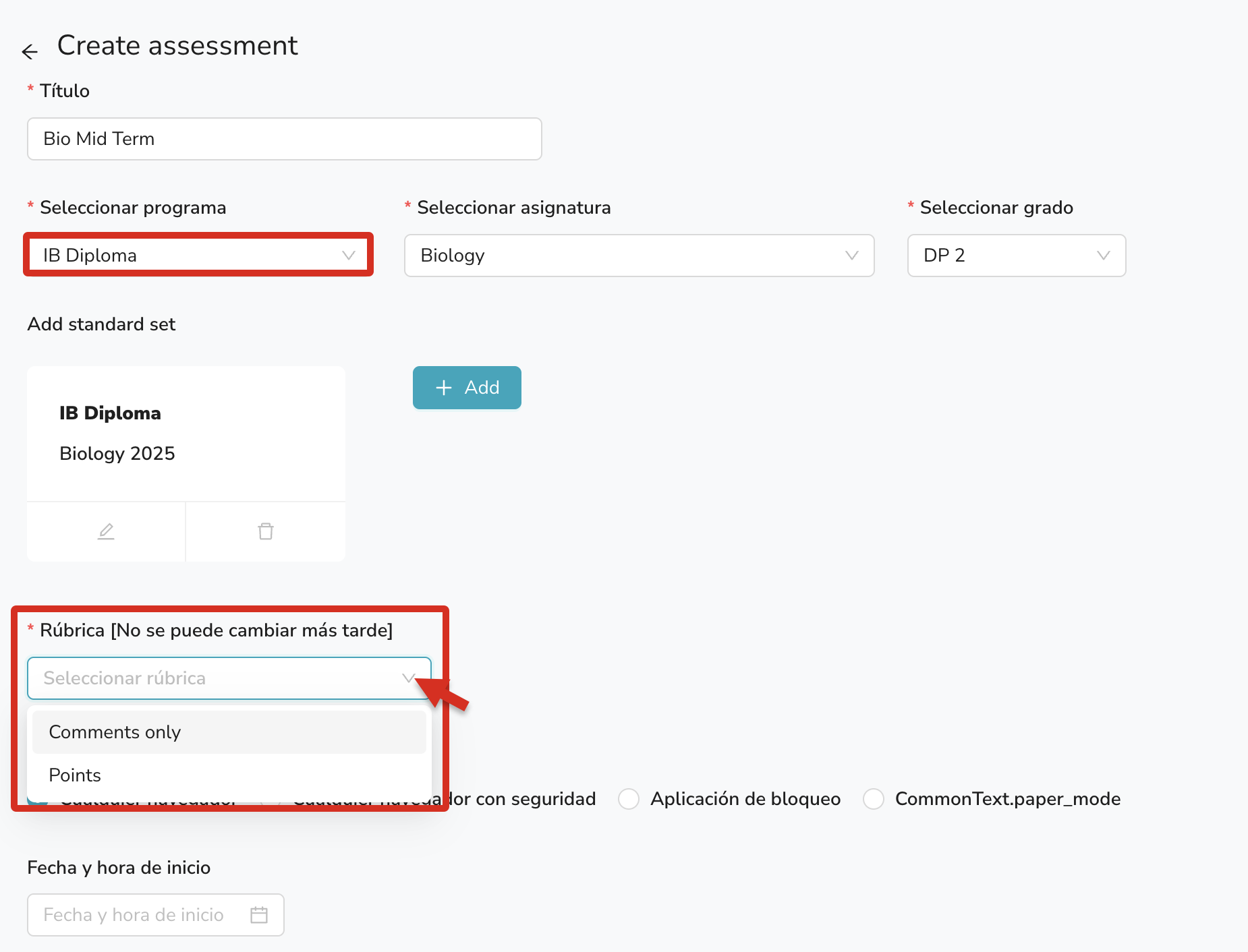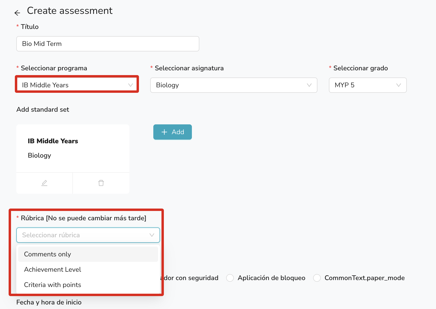 Nota: Una vez que crees la evaluación, no podrás cambiar el programa ni la rúbrica de la evaluación.