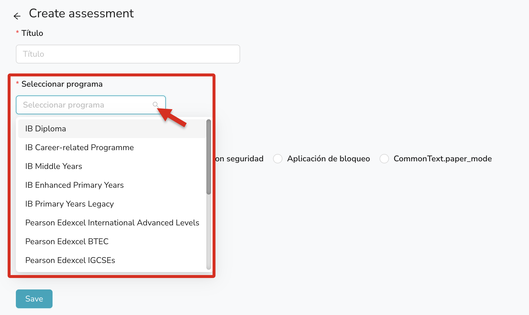 Paso 3: Selecciona el programa deseado en el menú desplegable Seleccionar programa.