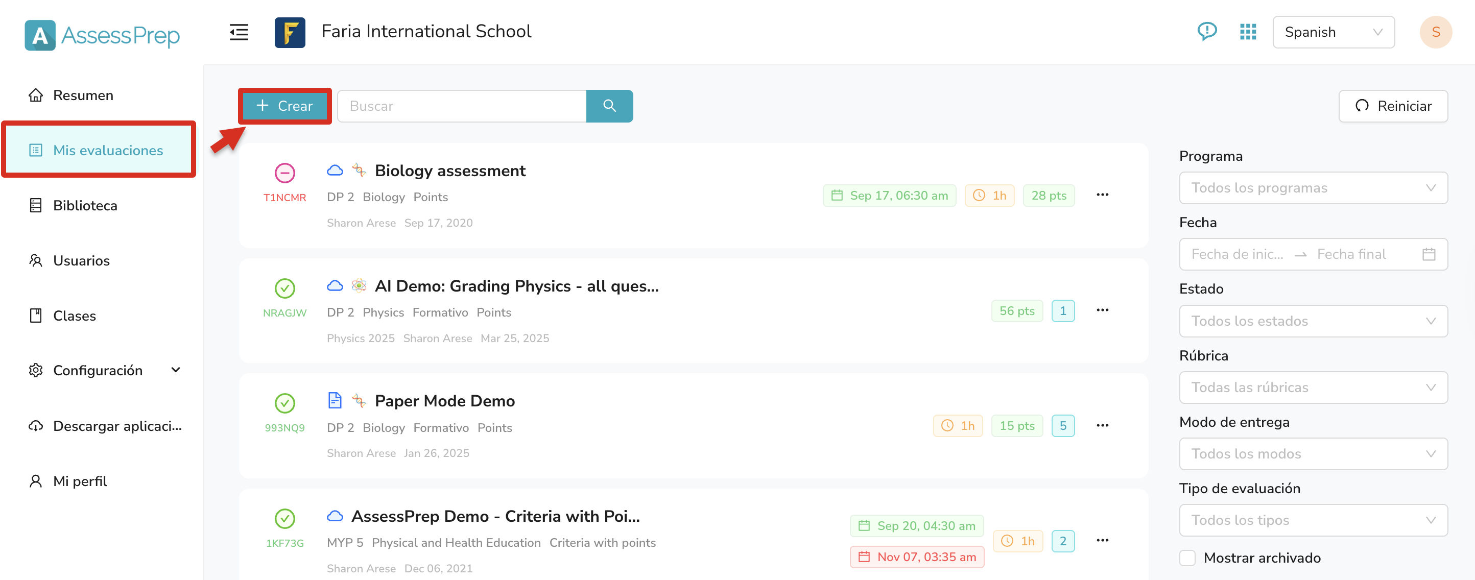 Paso 2: Haz clic en el botón Crear para comenzar a crear tu evaluación.