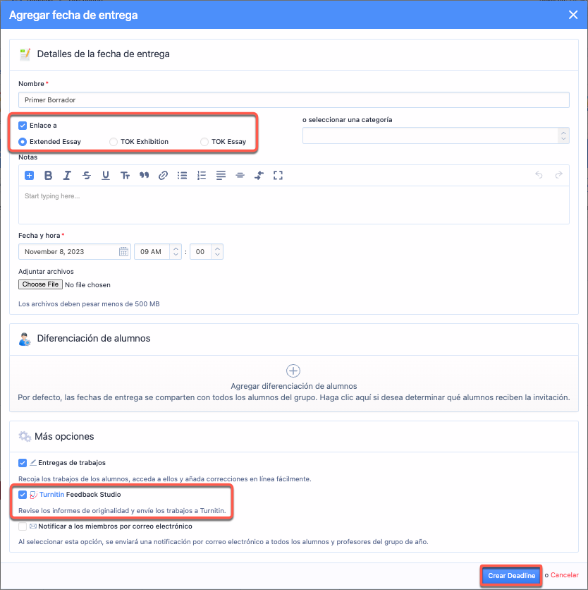 Creación de Fechas de Entrega con TurnitIn Habilitado