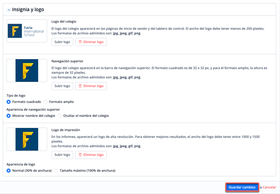 Logotipo para imprimir: logo de alta resolución que se muestra en los boletines de notas en PDF generados.