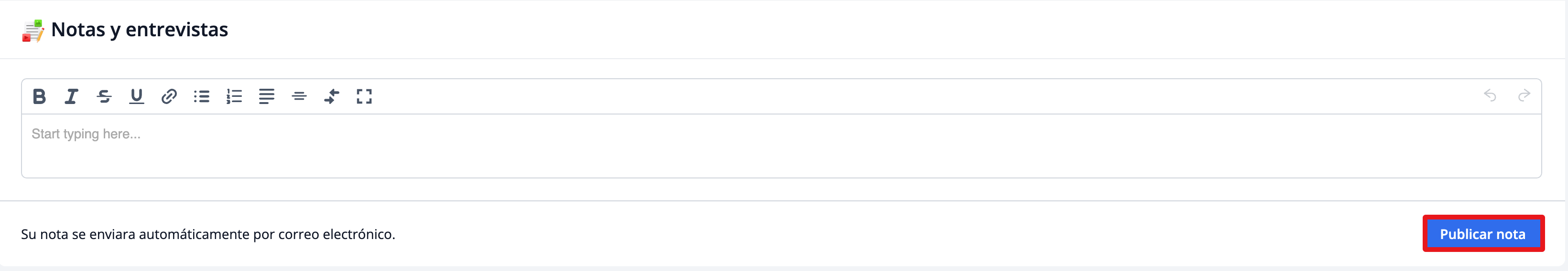 En la sección de Notas, puedes publicar mensajes para tu supervisor de proyecto. Esto es ideal para hacer preguntas y agendar reuniones.