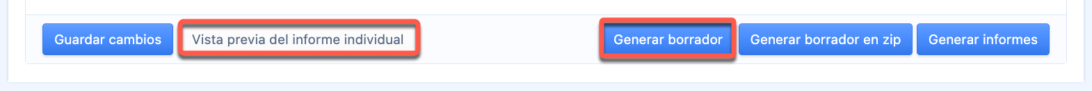 Después de haber hecho las selecciones, previsualiza los informes antes de generar los borradores finales. Pulsa Previsualizar informe individual para visualizar el aspecto que tendrá el informe de un alumno, o pulsa Generar borrador para generar un borrador del informe de todos los alumnos del nivel o niveles seleccionados.
