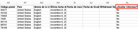 Los administradores pueden exportar una lista de alumnos que muestra qué alumnos han ocultado sus informes.