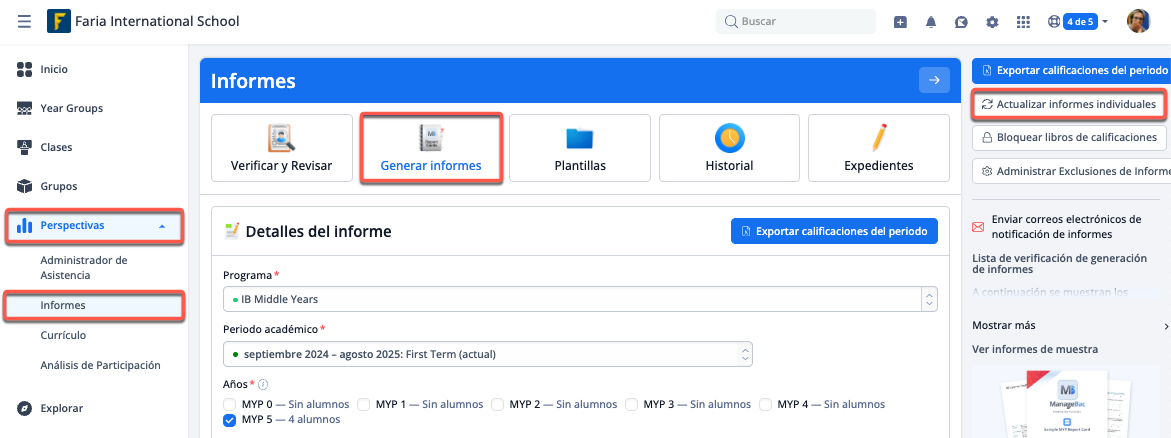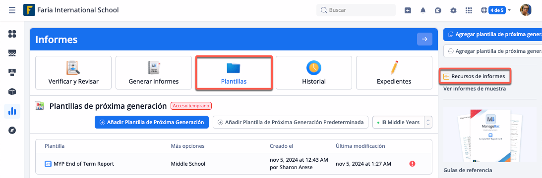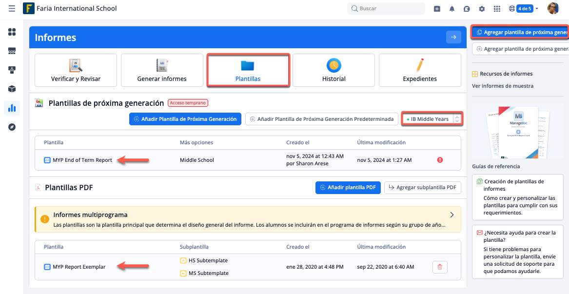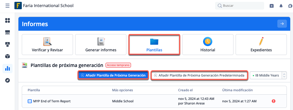 Desde Perspectivas > Informes > Plantillas > IB Middle Years