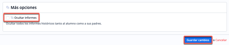 Ocultar informes a alumnos y padres
