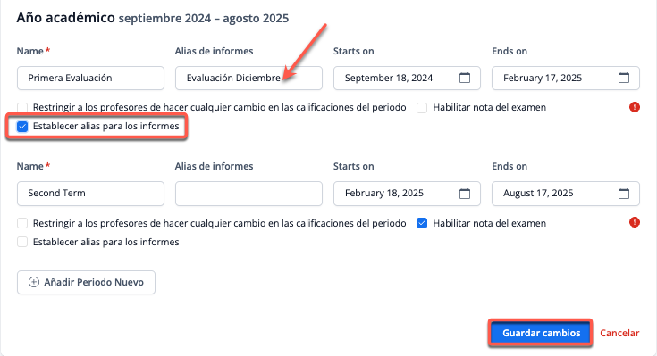 Establecer un Alias para mostrar un nombre de periodo personalizado