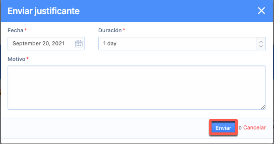 Nota: Los justificantes de asistencia no pueden solaparse. Sólo se permite un justificante por día.