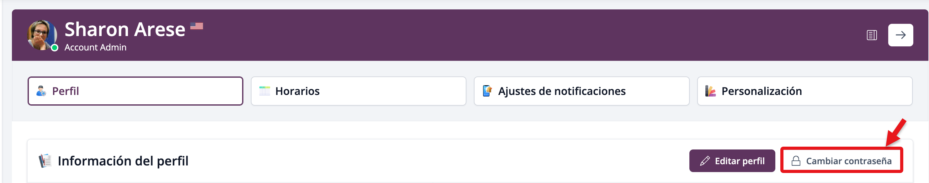 Si has iniciado sesión en tu cuenta, haz clic en tu nombre en la esquina superior derecha y selecciona Administrar tu perfil. Dentro de tu perfil, haz clic en Cambiar contraseña.